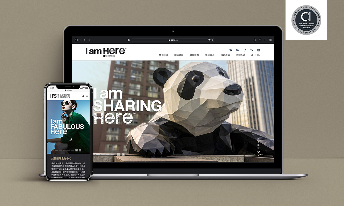 Chengdu IFS connects the fabulous people of Chengdu to a unique range of international experiences, providing a window on the world and a portal to a global lifestyle. The concept is about "CONNECTEDNESS" and "HERE" is the key to the campaign. We take the essence of the "I am HERE" design and use the unique panda’s geometric lines to create a pattern on the signature tagline. This bold and dynamic statement takes the geometric theme to a new level of engagement allowing us to apply all manner of attributes to the core graphic elements.