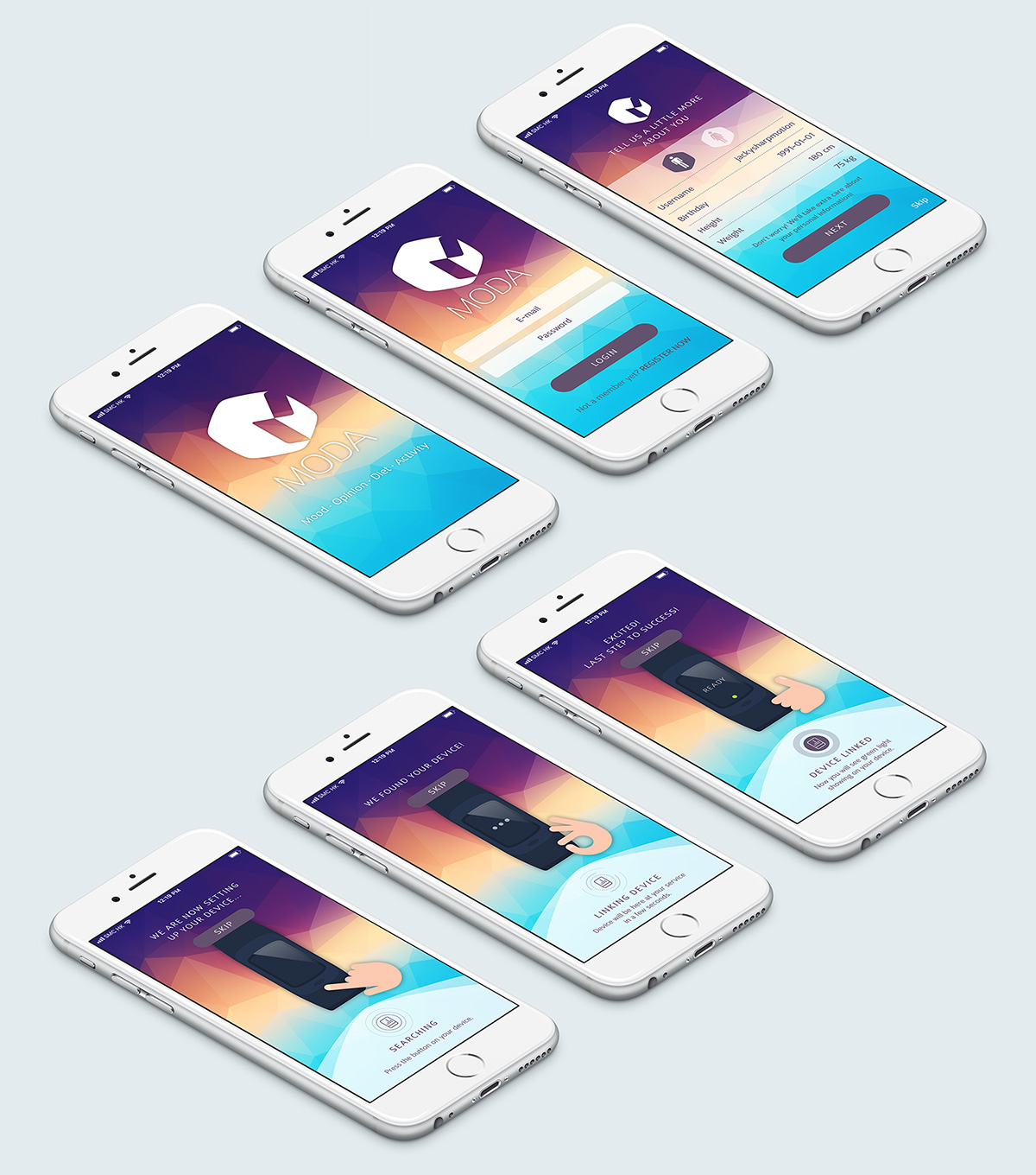The visual identity features an alluringly rendered colour gradient as the main design element; in fact, this vibrant palette is derived from a combination of two natural phenomena - Polar night & Midnight sun, which is the metaphor of unceasing and omnipresent connection between MODA’s subscribers and professionals. Polygon graphic is aptly used as an elegant ex