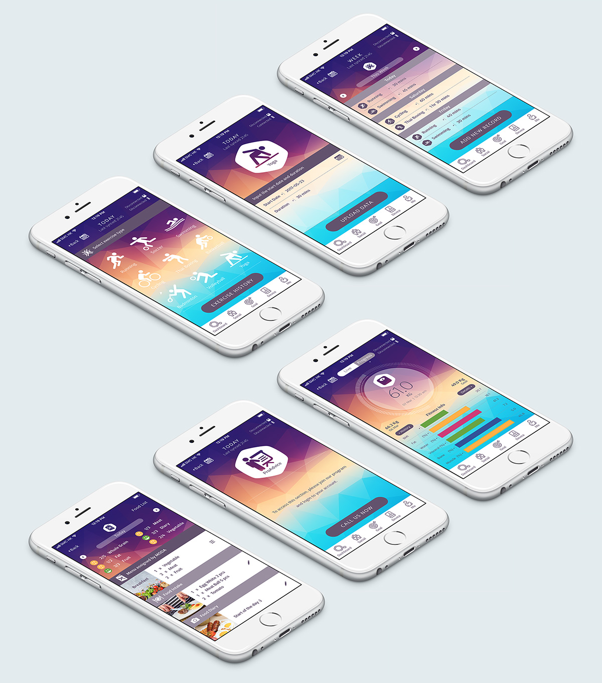 "Exercise", "Food Journey", "Pro-advice" and "Weight" Section