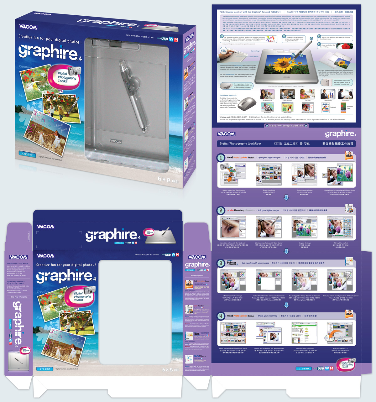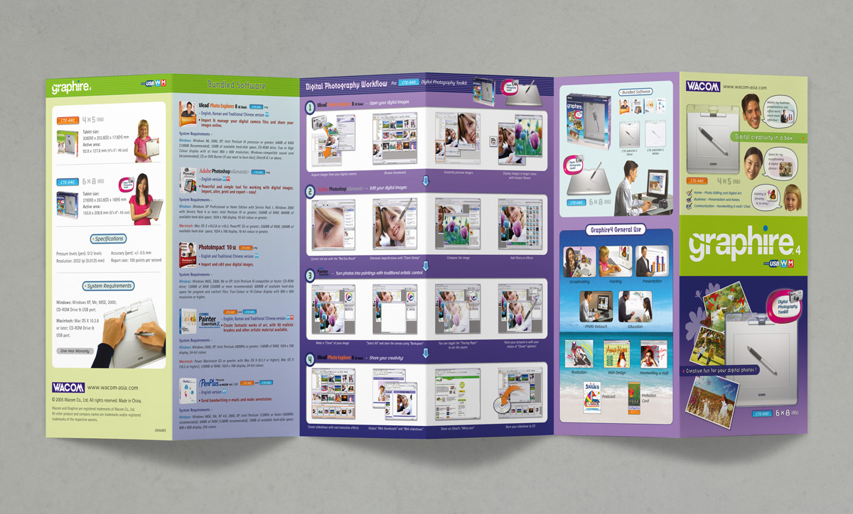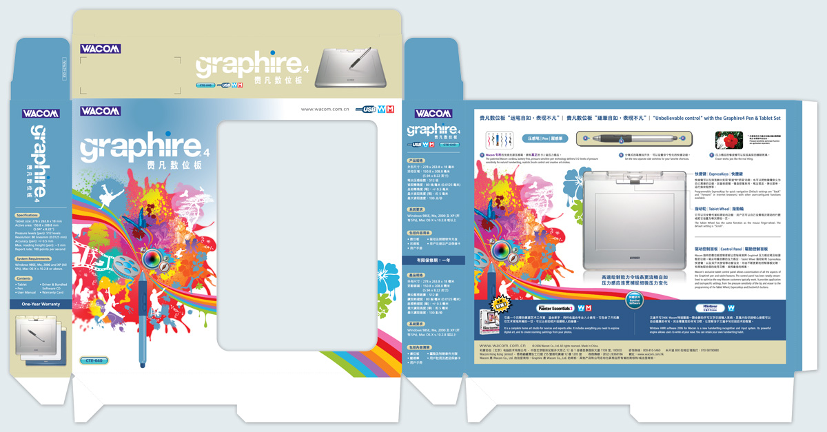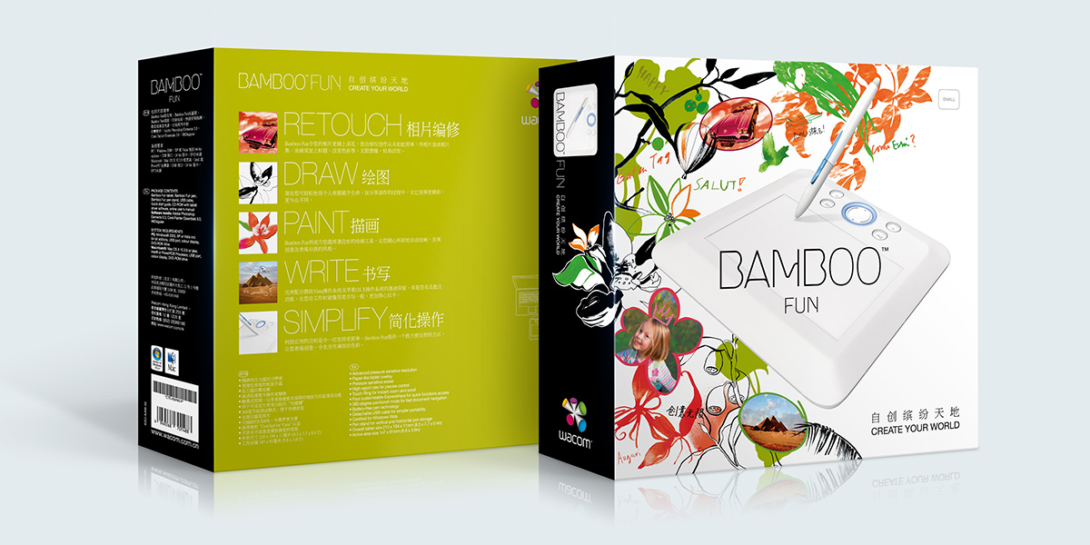 As the design agency of Wacom Asia Pacific and Wacom China since 2001, we are responsible for the graphic design and localization of packagings as well as related collateral materials, which includes the series of Intuos, Graphire, Cintiq & Bamboo, etc.