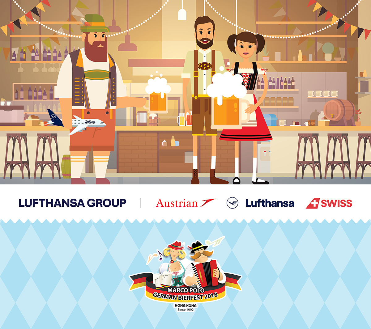 Being one of the official sponsors, Lufthansa Group and Munich Airport (5-Star carrier and airport nominated by Skytrax respectively) aimed to boost ticket sales and promote their social media channels during this exclusive gastronomic event. Targeting fun-loving guests who appreciate German culture with an eye to quality, an infographic backdrop has been designed to lure passers-by with a vibrant palette which set a welcoming and humorous tone to voice. Visualizing the details with an array of famous landmarks featuring Reichstagsgebäude, Brandenburger Tor, Kölner Dom and Schloß Neuschwanstein as well, the illustration also emphasizes Airbräu – the only airport brewery in the world, with its special beer “Gaudium” offered only at Munich Airport.