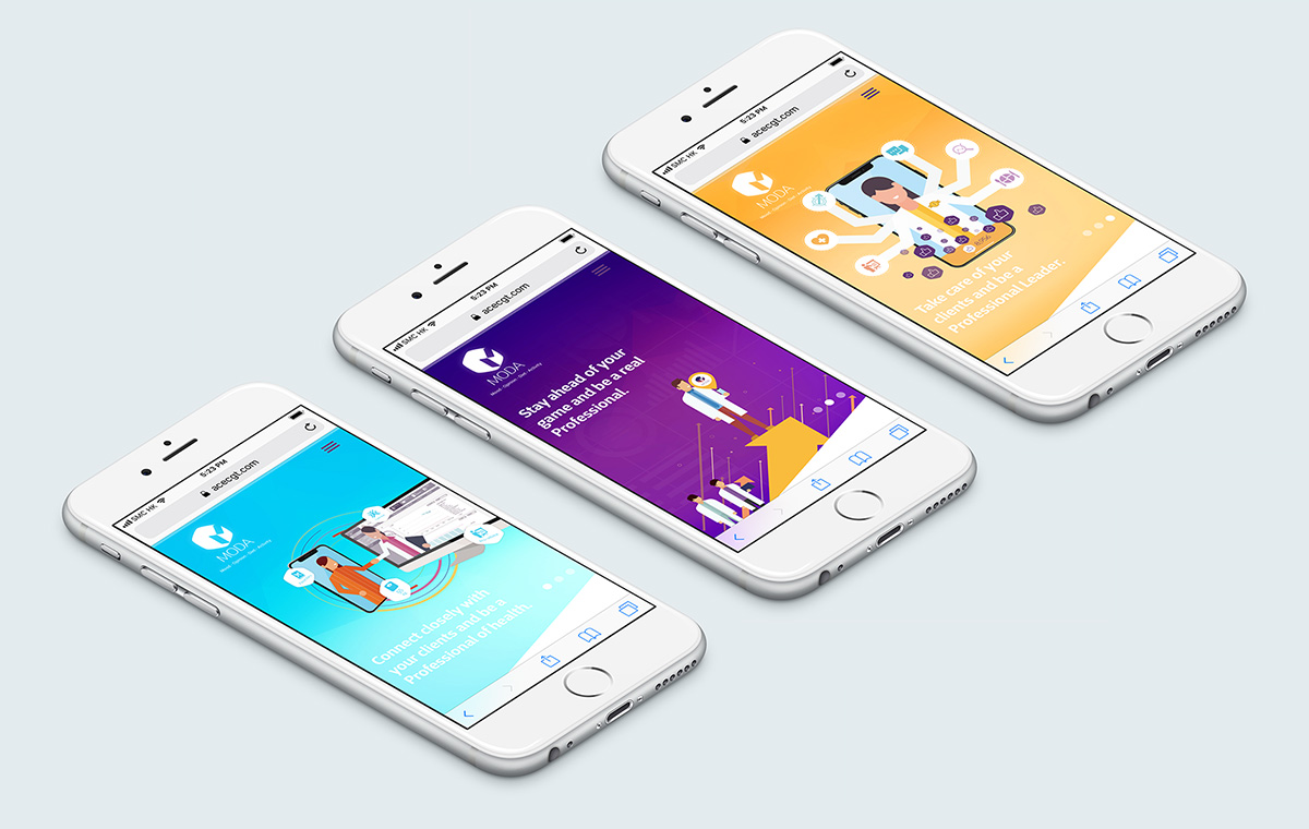 The visual identity features an alluringly rendered colour gradient as the main design element; in fact, this vibrant palette is derived from a combination of two natural phenomena - Polar night & Midnight sun, which is the metaphor of unceasing and omnipresent connection between MODA’s subscribers and professionals. Polygon graphic is aptly used as an elegant ex