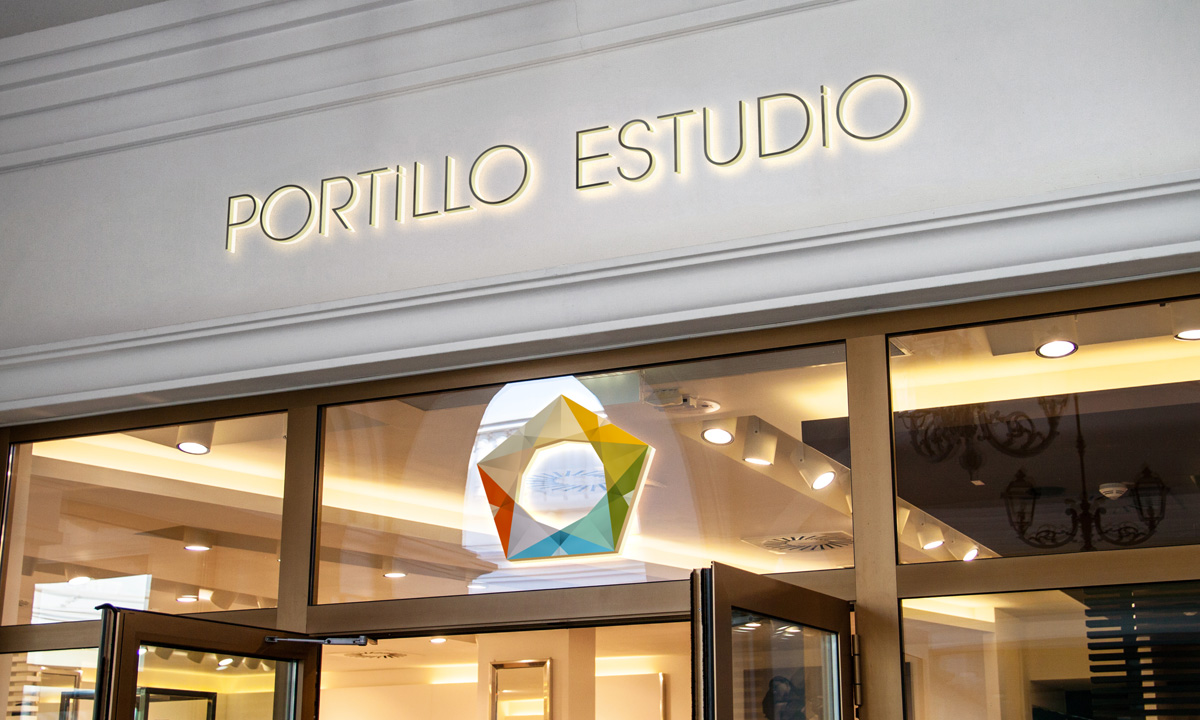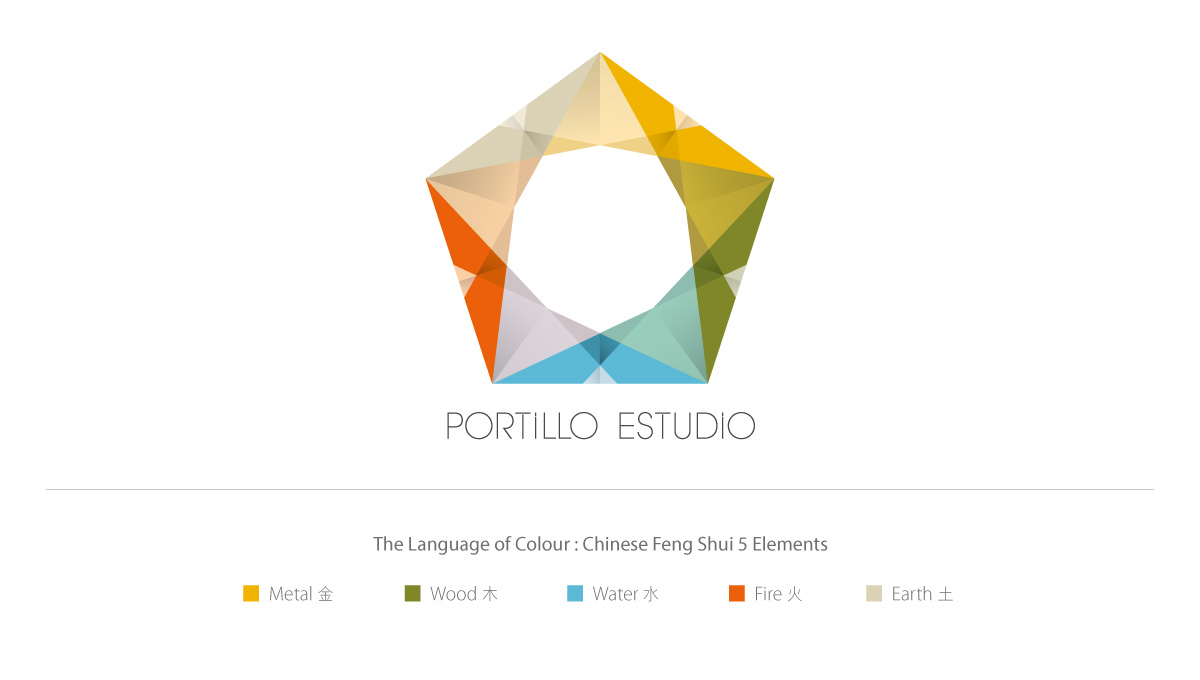 The concept of this logo is based on a pentagon, each corner representing each sense, the lines intertwining representing the joint senses, and the endless possibility of different combinations that will be provided by Portillo Estudio.