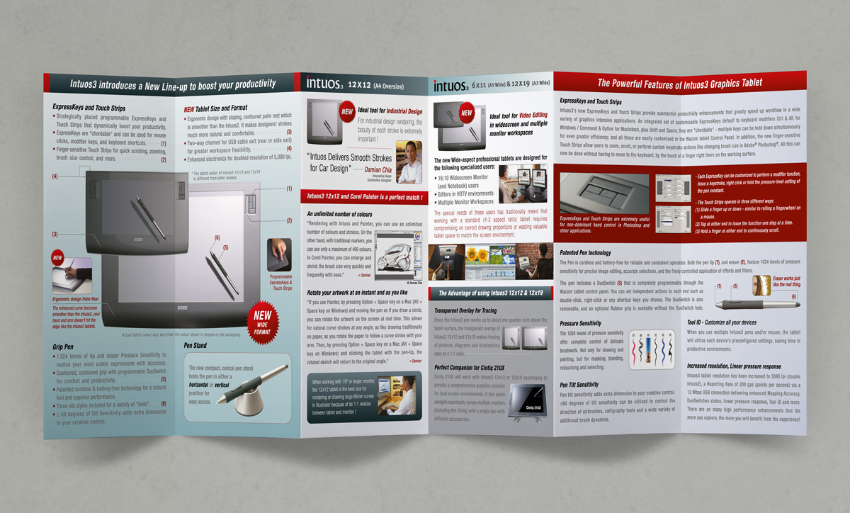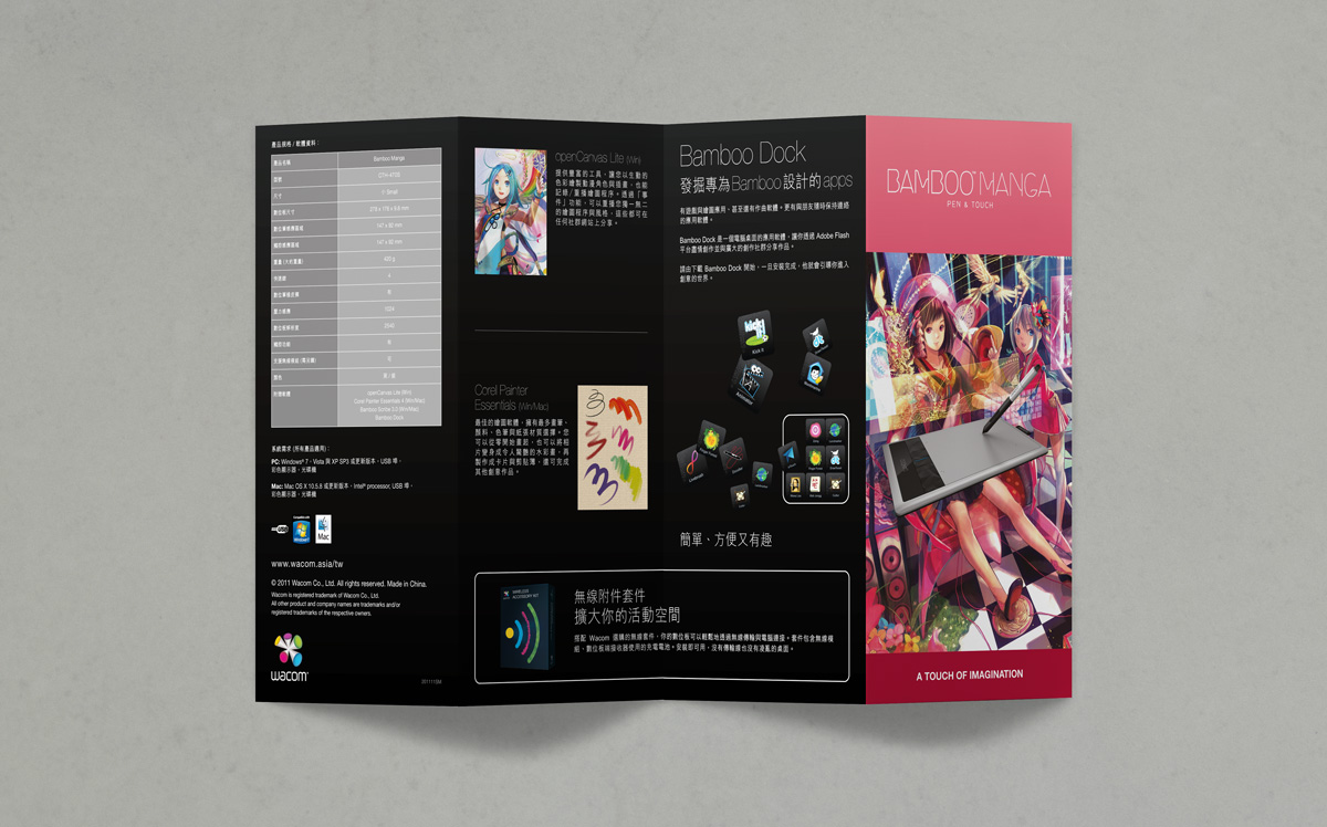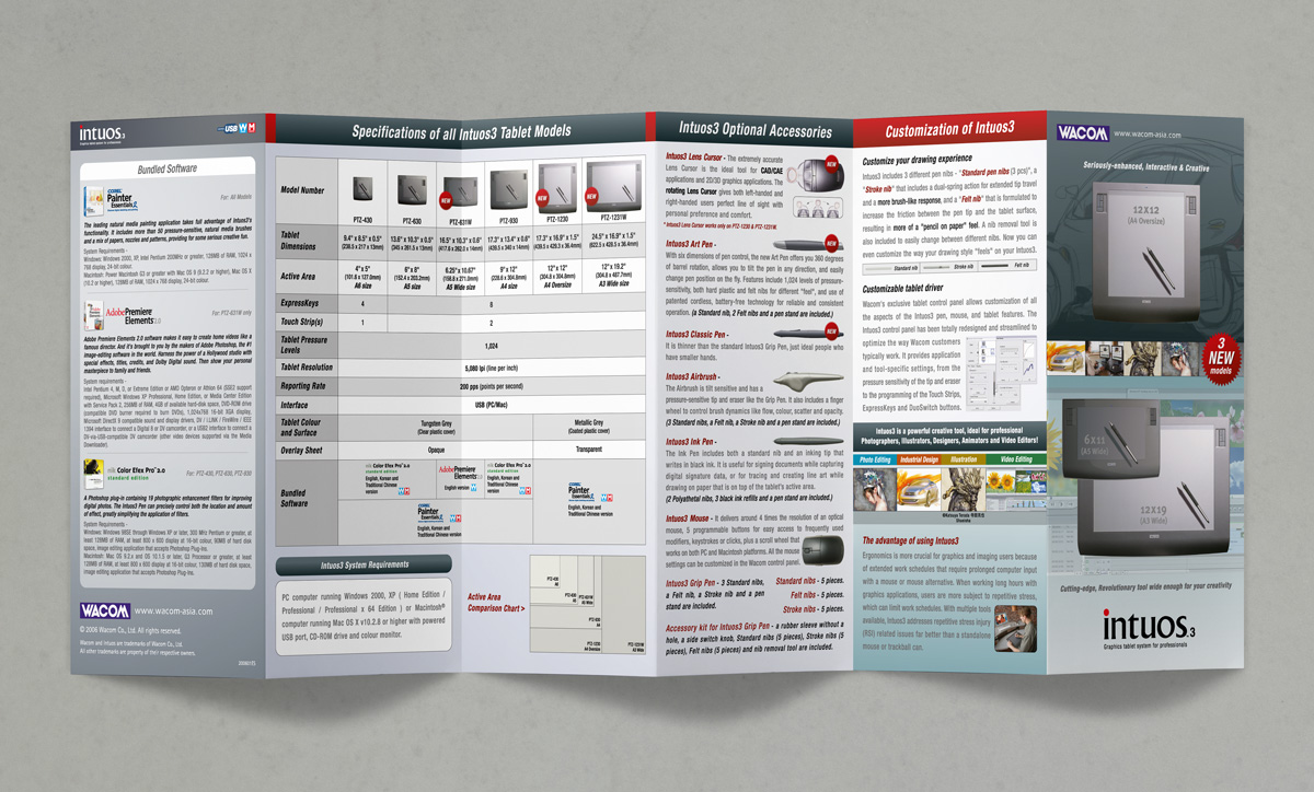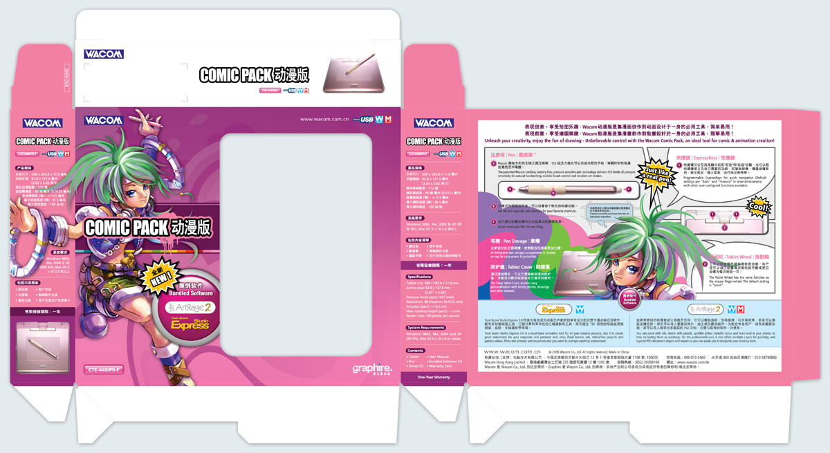 As the design agency of Wacom Asia Pacific and Wacom China since 2001, we are responsible for the graphic design and localization of packagings as well as related collateral materials, which includes the series of Intuos, Graphire, Cintiq & Bamboo, etc.